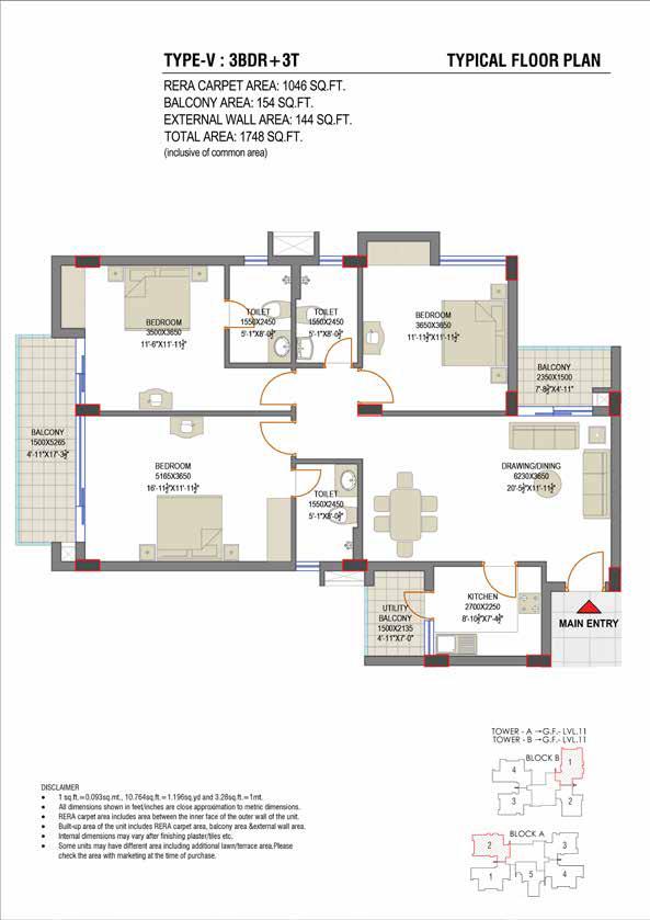 - Stilt+11 floors with basic prices starting at 60.48 lakhs for 2BR apartments and 74.50 lakhs for 3BR apartments
